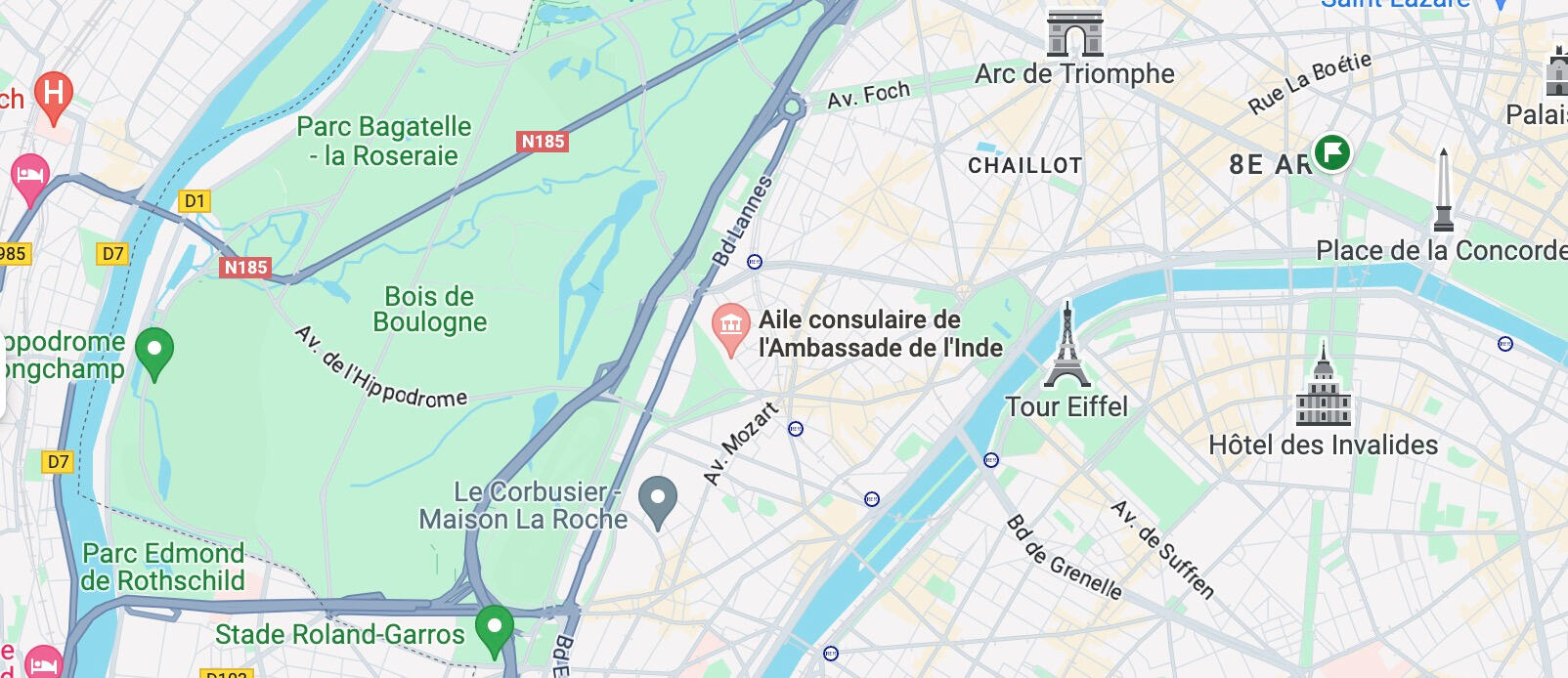 Notez les coordonnées de l'ambassade de France en Inde afin de pouvoir les contacter en cas de besoin : 📍 20 Rue Albéric Magnard, 75116 Paris (France) ☎ +33140507171